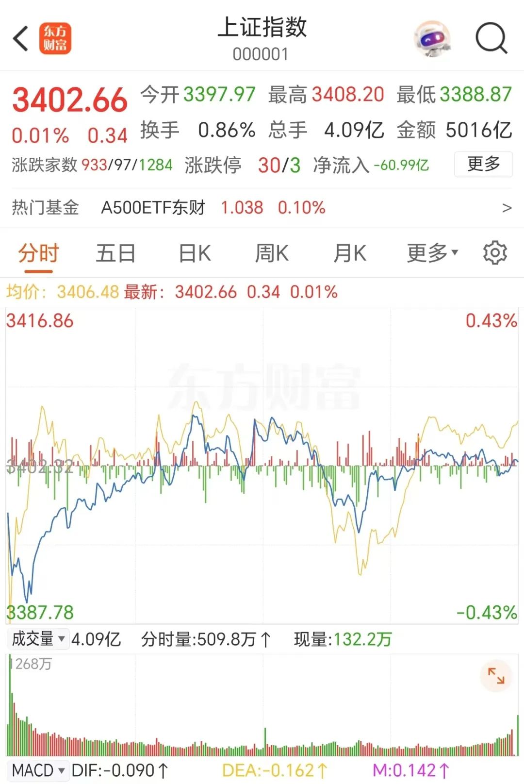 上证指数周四微涨,总体继续沿10日均线上行,面对3400点整数关口,大盘整体处于窄幅震荡蓄势选择方向的状态,从分时图看,大小票日内表现较为均衡。